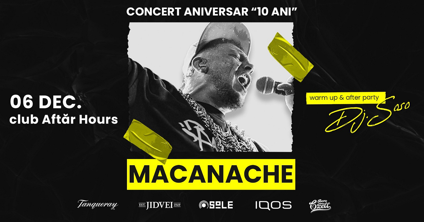 Concert aniversar, 10 ani de Macanache. Warm-up & afterparty cu DJ Soso.