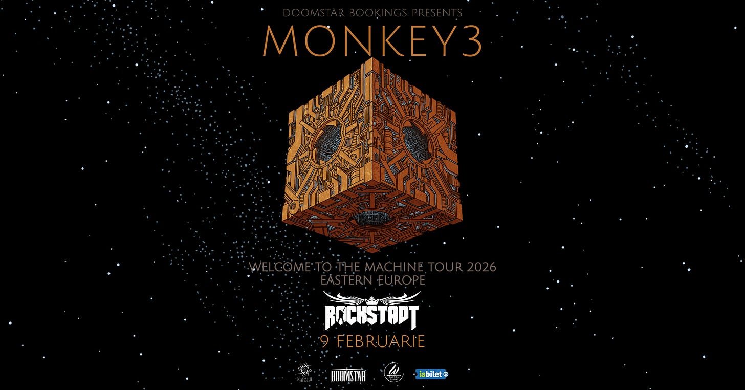 Monkey3 vin din Elveția și cântă rock psihedelic instrumental cu aer de anii ’70, construit pe groove-uri hipnotice și multă atmosferă. Muzica lor e gândită ca o călătorie sonoră: energică, cinematică și mereu în mișcare.