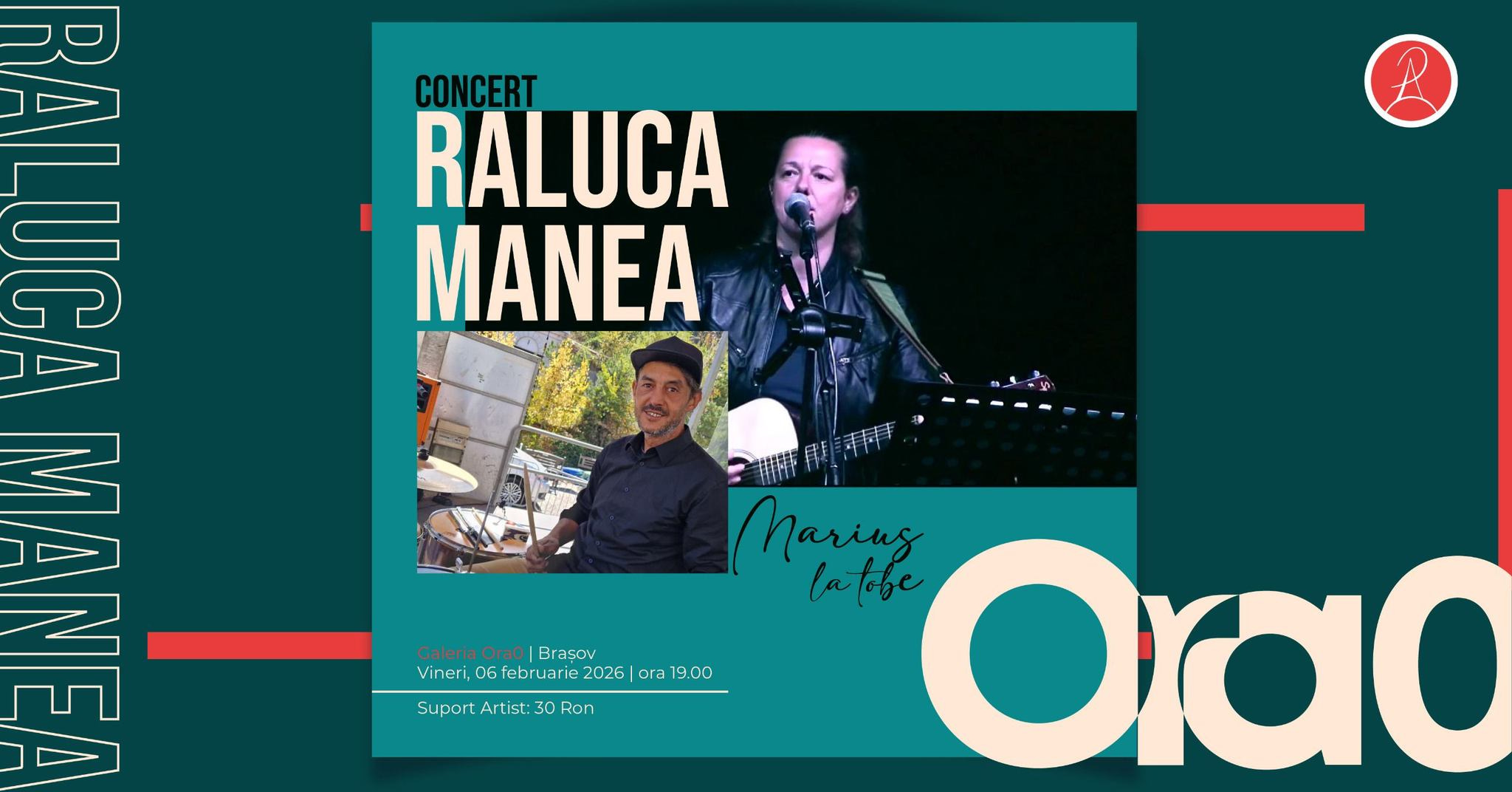 Așa își descrie Raluca concertul acustic pe care îl aduce la galerie – o întâlnire muzicală de aproximativ două ore, alături de Marius la percuție, construită în jurul folkului, popului și, pe alocuri, a unor influențe de rock acustic. Muzică sinceră, aproape de oameni, cântată cu emoție și libertate.